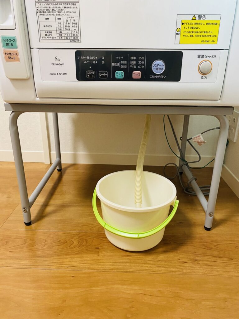 最初の洗面所に置いていた時には浴室の近くだったので、乾燥機の排水ホースを浴室に入れて直接ホースから浴室へ水を捨てていました。